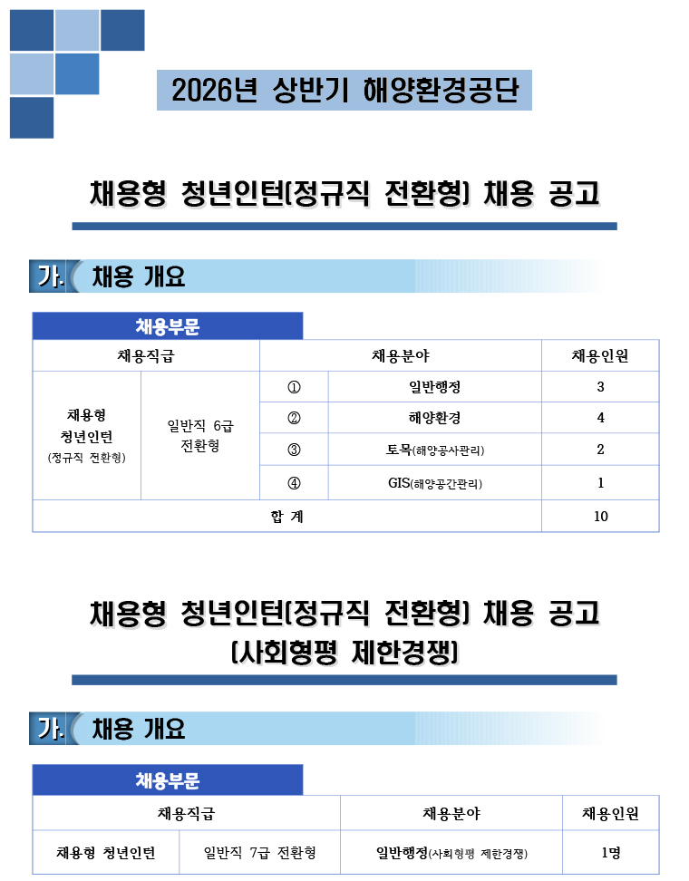 [해양환경공단] 2026년 상반기 채용형 청년인턴 채용공고