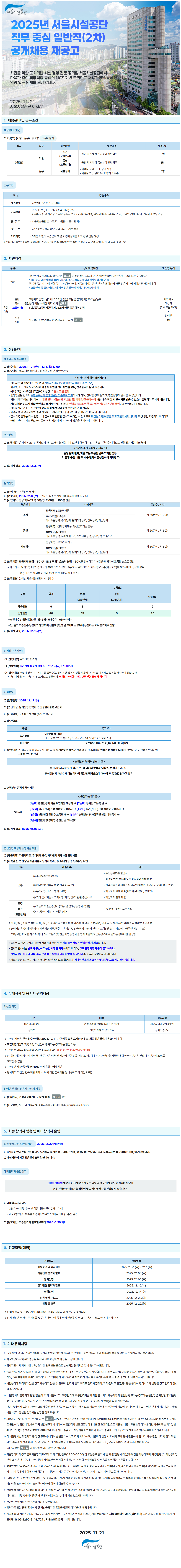 [서울시설공단] 2025년 일반직(2차) 공개채용 재공고