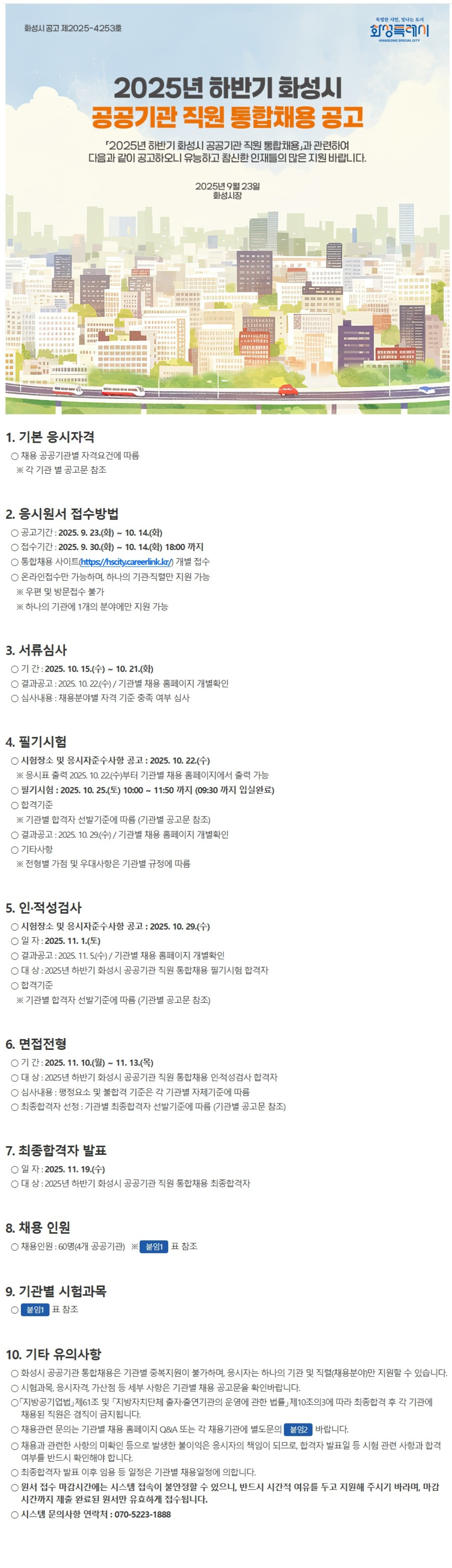 [화성시 공공기관 통합채용] 2025년 하반기 직원 통합채용 공고
