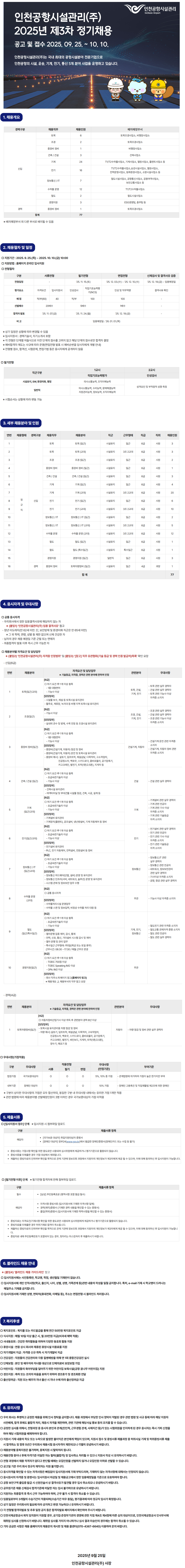 [인천공항시설관리] 2025년 제3차 정기 채용공고