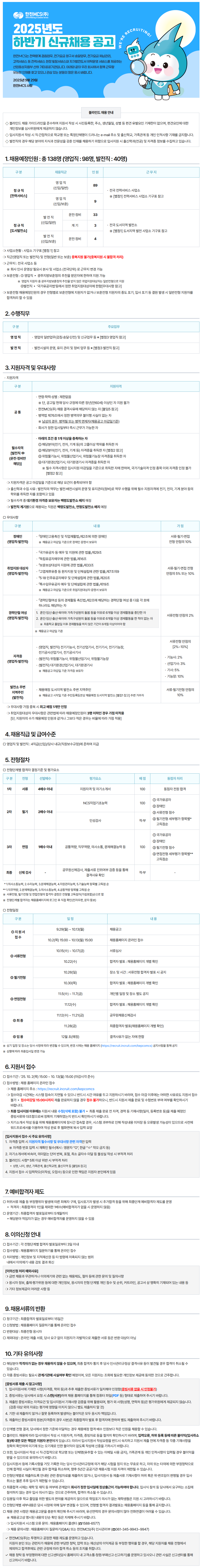 [한전MCS] 2025년도 하반기 신규채용 공고