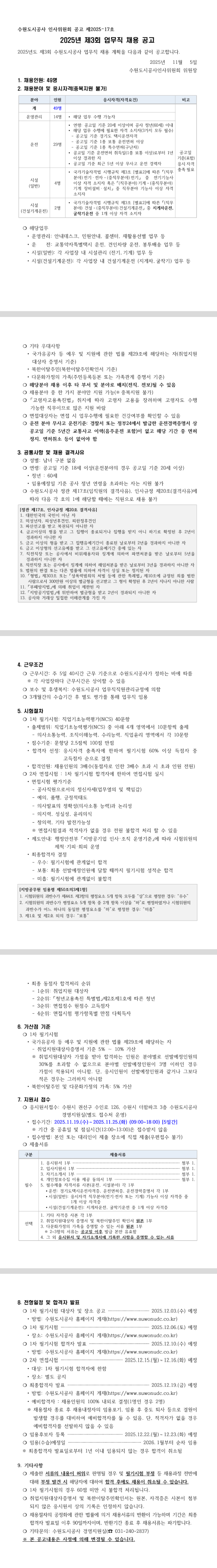 [수원도시공사] 2025년 제3회 업무직 채용 공고