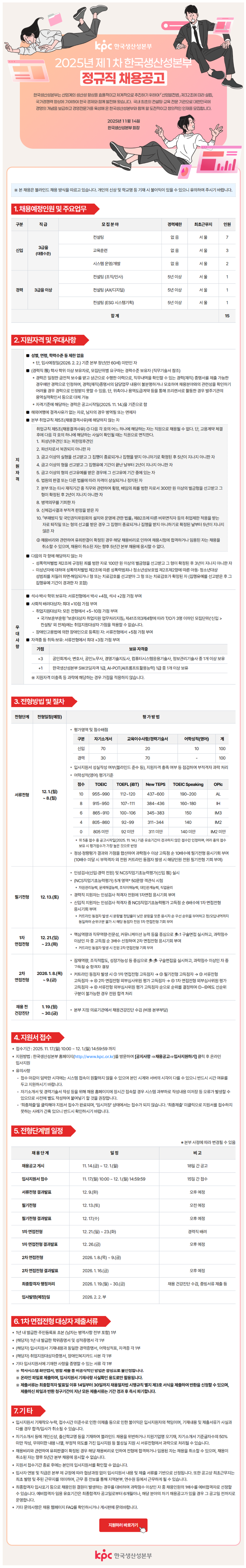[한국생산성본부] 2025년 제1차 정규직 공개채용 공고