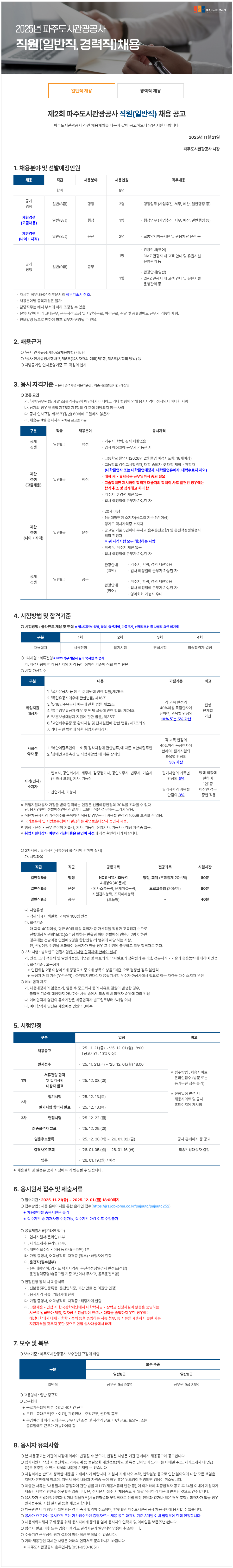 [파주도시관광공사] 2025년 직원 채용