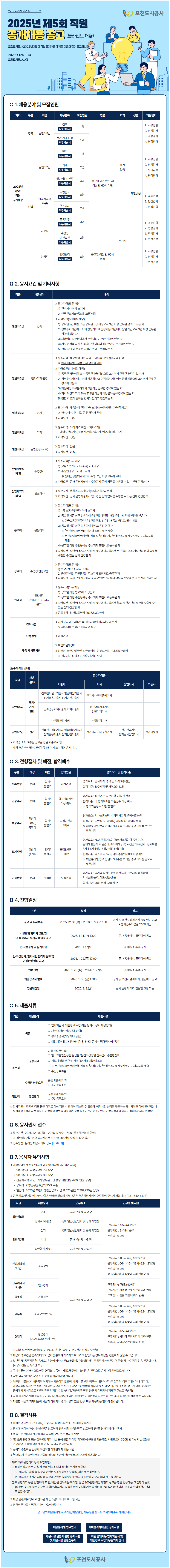 [포천도시공사] 2025년 제5회 직원 공개채용 공고