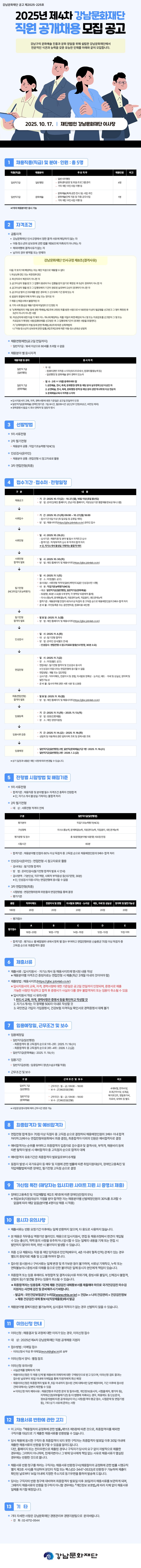 [강남문화재단] 2025년 제4차 직원 채용 공고