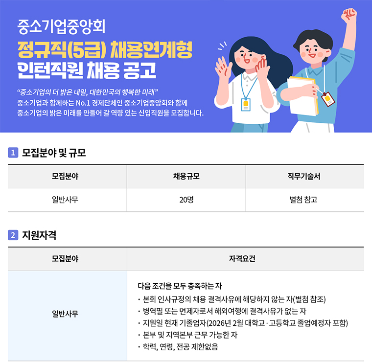 | 서류 합격자 발표 | 12월 5일 | 면접시험 | 1차: '26년 1월 6일~1월 8일 2차: '26년 1월 15일~1월 16일 |