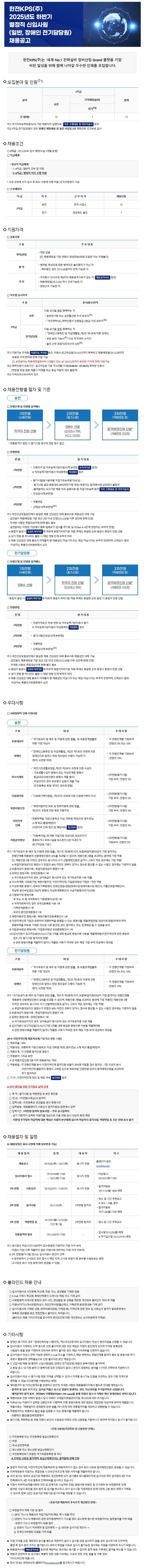 [한전KPS(주)]2025년도 별정직 채용공고