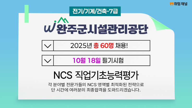 2025 완주군시설관리공단 NCS 직업기초능력검사 [전기/기계/건축-7급]