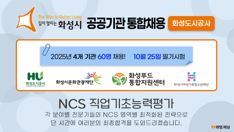 2025 화성시 공공기관 통합채용 NCS 직업기초능력평가 [화성도시공사]