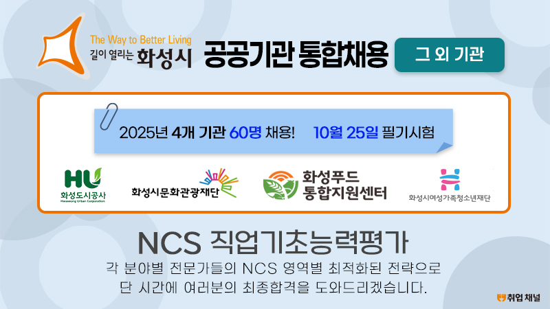 2025 화성시 공공기관 통합채용 NCS 직업기초능력평가 [그 외 기관]