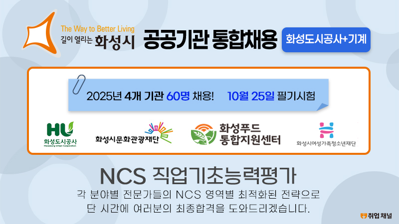• 2025 화성시 공공기관 통합채용 NCS 직업기초능력평가 [화성도시공사+기계]