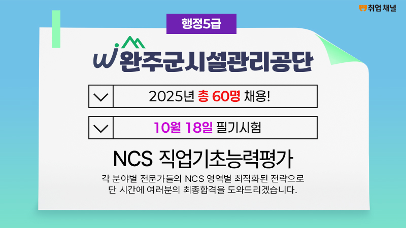 • 2025 완주군시설관리공단 NCS 직업기초능력검사 [행정5급]