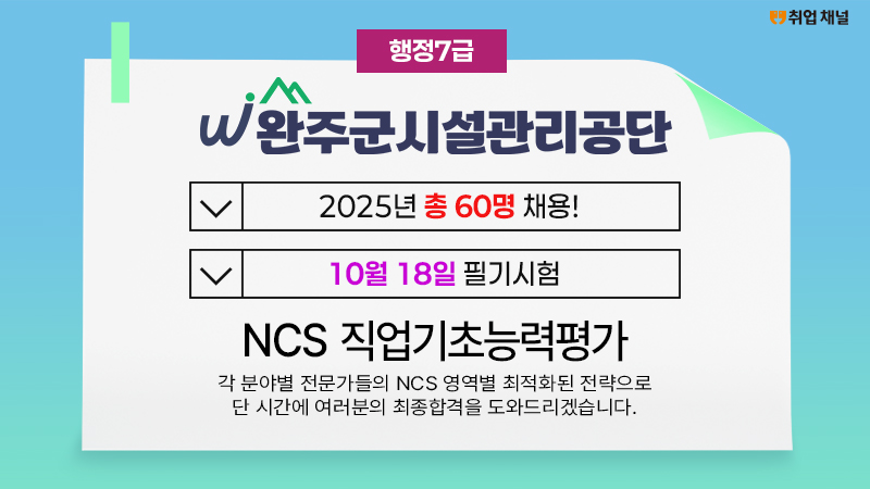 • 2025 완주군시설관리공단 NCS 직업기초능력검사 [행정7급]