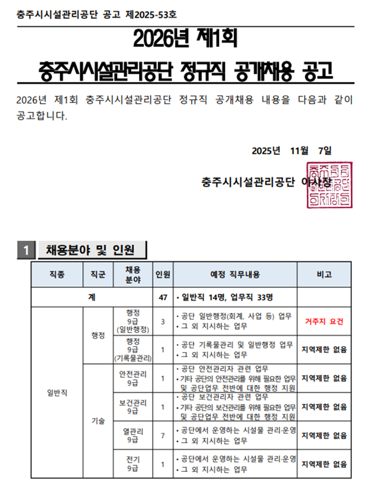 | 필기시험 | 25년 12월 6일 | 필기합격발표 | 12월 10일 |