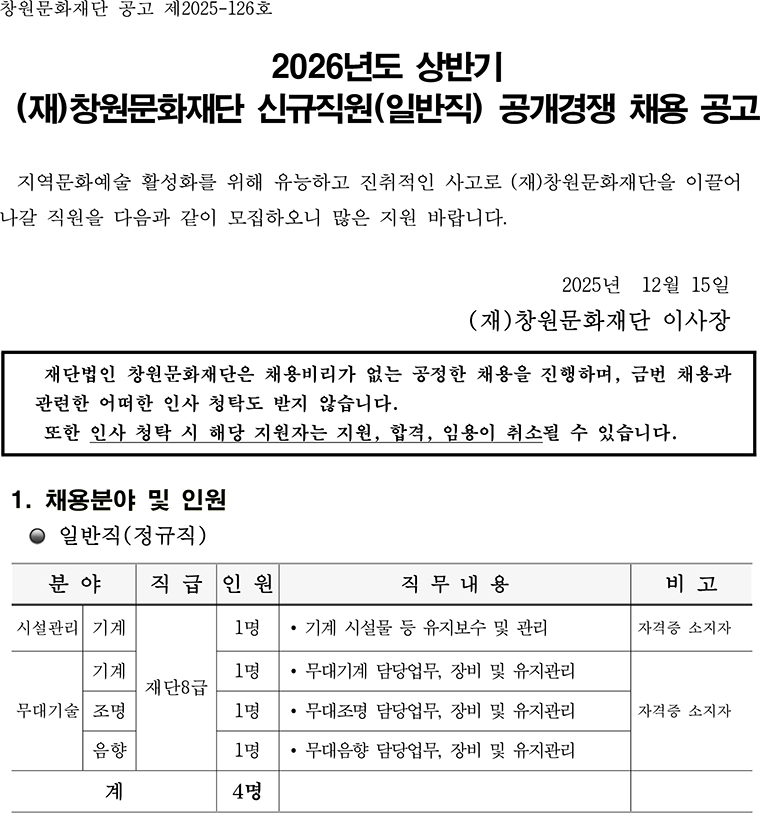 | 원서접수 | 12월 22일~12월 26일 | 서류 합격자 발표 | 2026년 1월 22일 |