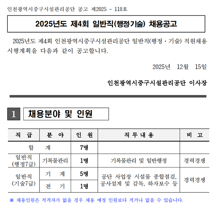 | 필기시험 | 26년 1월 10일 | 필기 합격자 발표 | 26년 1월 14일 |