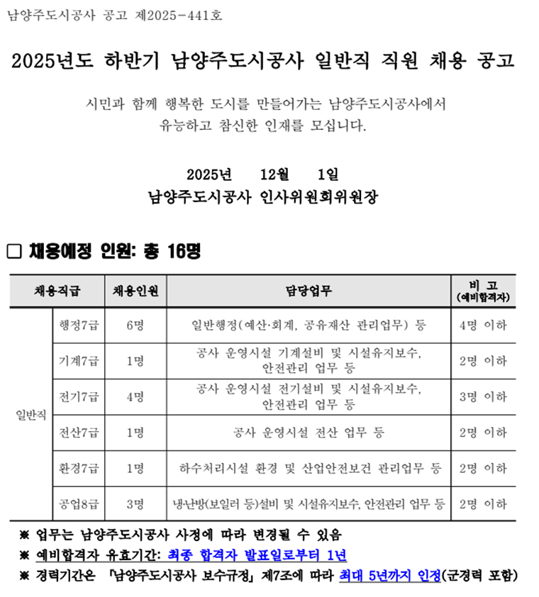 2025년 총 16명 채용!
