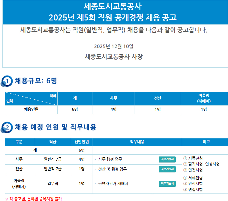 | 필기시험 | 12월 27일 | 최종 합격자 발표 | 2026년 1월 13일 |