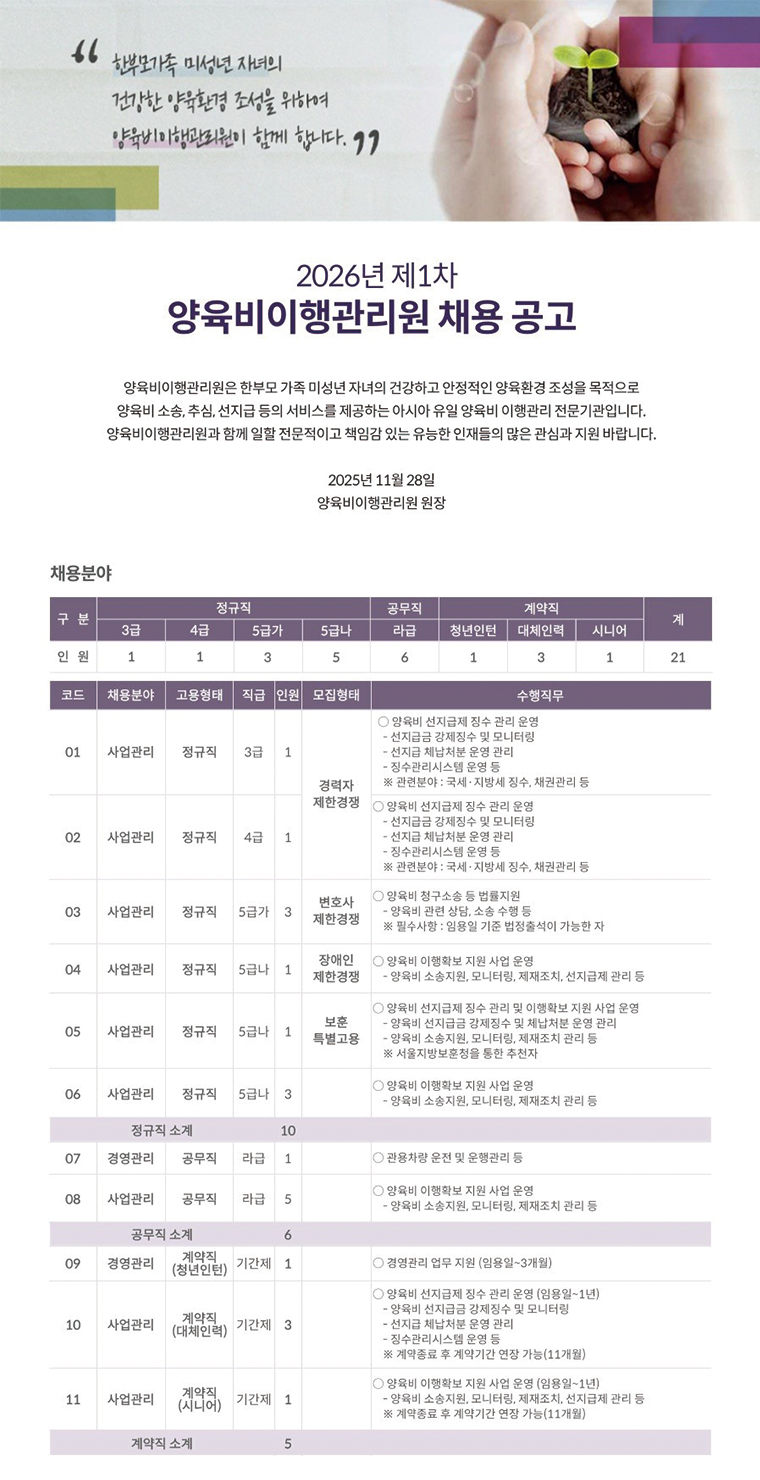 | 필기시험 | 26년 1월 10일 | 필기 합격자 발표 | 26년 1월 13일 |