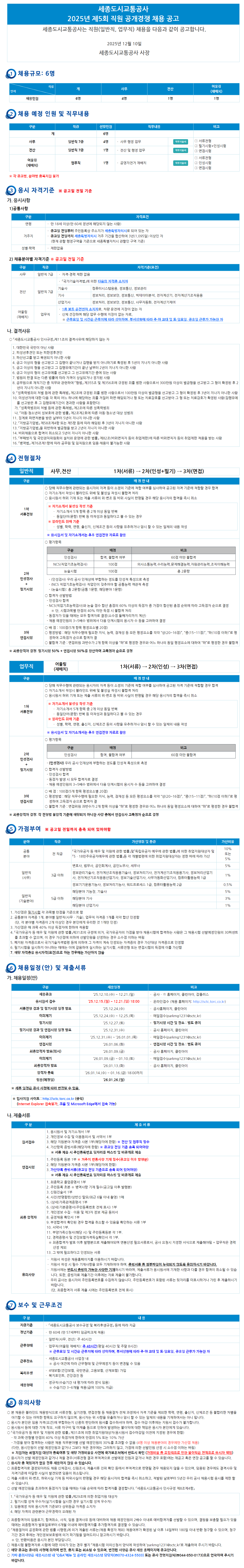 [세종도시교통공사] 2025년 제5회 직원 공개 채용 공고